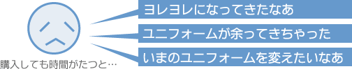 加えて、「ユニフォームを導入してだいぶたつがヨレヨレになってきた」「オープン当初に比べて従業員を減らしたがユニフォーム在庫が増えてもったいない」「今のユニフォームに飽きたのでモデルチェンジしたいが予算が厳しい」等、時間とともに新たなユニフォーム問題が持ち上がります。
